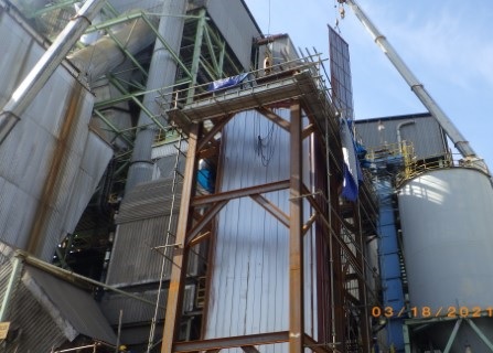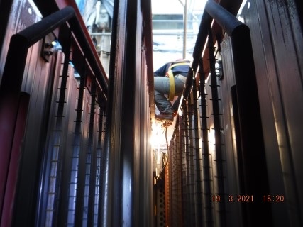 Replacement of CE, DE and rapping system in the 1st and 2nd fields as well as repair / maintenance in the 3rd field were conducted in early 2021. Before shutdown, a specially built hanging fixture was erected to accommodate the pre-assembled DE with DE frame and CE with suspension beam in order to minimize the installation time.